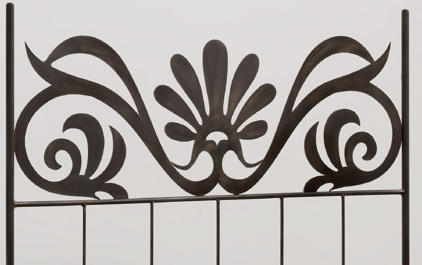 Cabecero de acero en corte por láser con patas redondas de 130cm de altura.