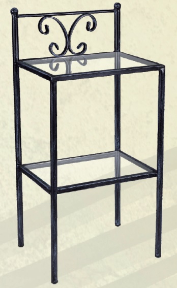 Mesita de noche de acero de 80cm de alto x 40cm de ancho x 30cm de fondo con cristales en la parte superior e inferior.