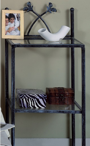 Mesita de noche de acero de 80cm de alto x 40cm de ancho x 30cm de fondo con cristales en la parte superior e inferior.