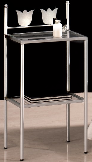 Mesita de acero de 75cm de alto x 40cm de ancho x 30cm de fondo, con adornos en la parte superior de tulipanes en corte por láser.