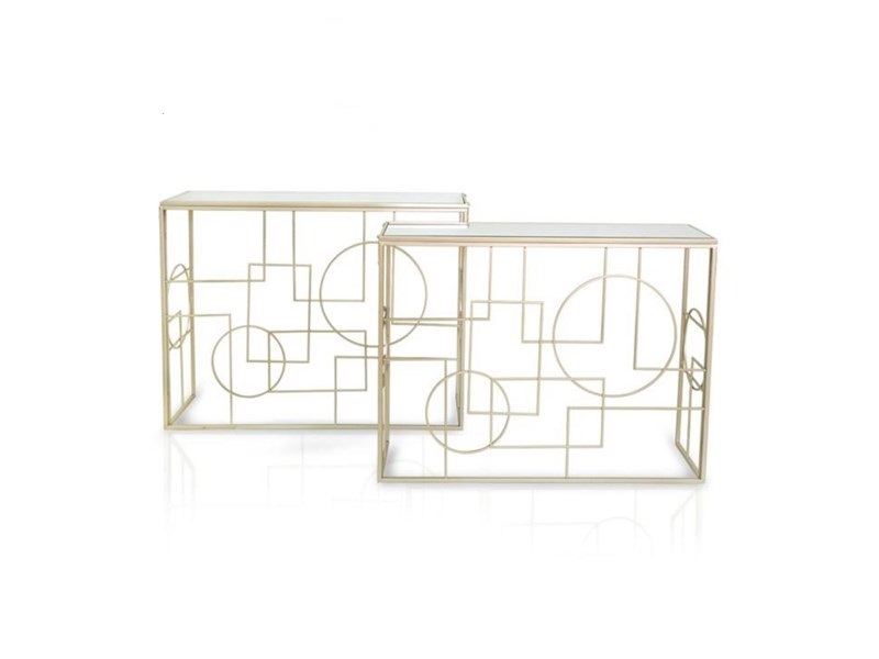 Set formado por dos consolas modelo Surabaya en acero color champan